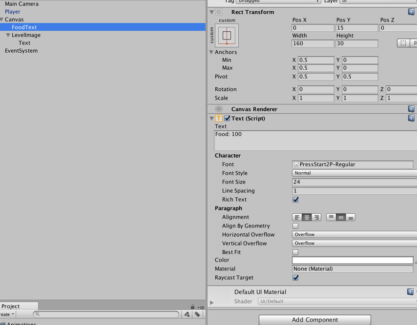 foodText.text = "+" + pointsPerFood + " Food: " + food;